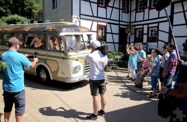 In diesem Jahr wollte Gabriele Breuer nicht absagen. „Ich habe mir gedacht: jetzt oder nie! Noch einmal werden sie ganz sicher nicht anrufen.“ Tochter Marie, mittlerweile acht Jahre alt, geht in Mechernich zur Schule und erzählt stolz, dass ihre Klassenkameraden es spannend und cool fänden, dass das Fernsehen bei ihr auf dem Hof sei. Und während Projektleiter Guido Niebuhr allen Beteiligten noch die letzten Anweisungen gibt, entdecken die Breuer-Söhne Christian (18), Florian (16) und Sebastian (13) bereits den Bus.